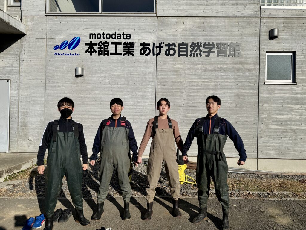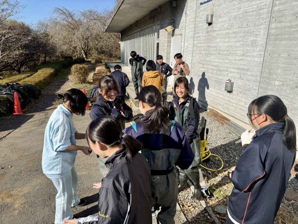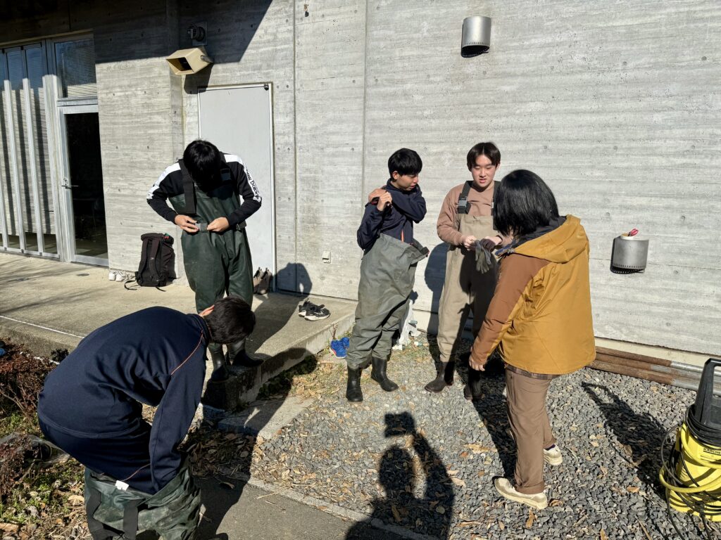 では、胴長に着替えていざ池の中へ!