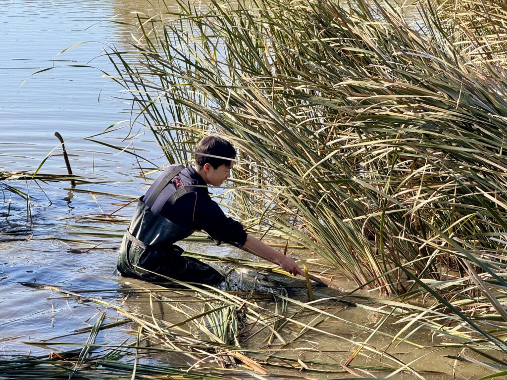 というわけで今回はガマと呼ばれる抽水植物の刈り入れを行いました。