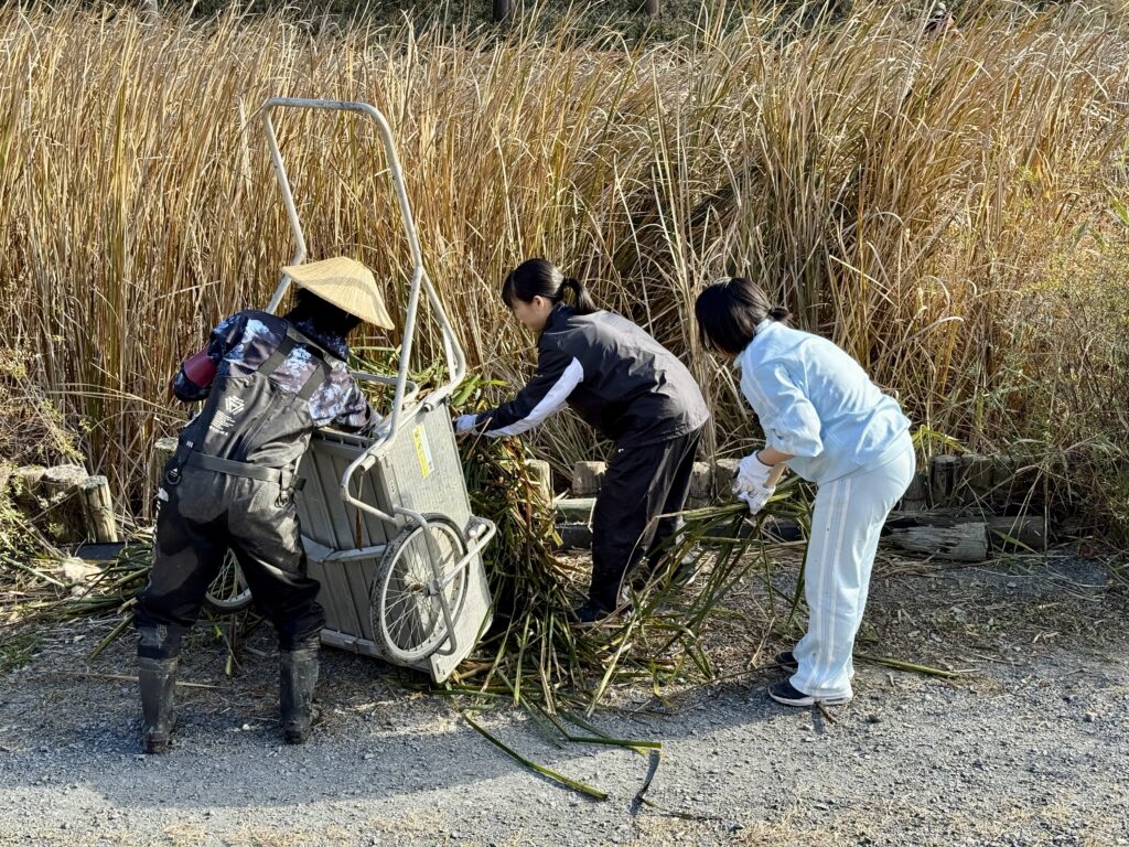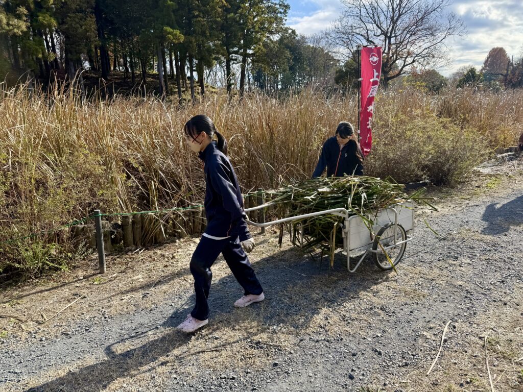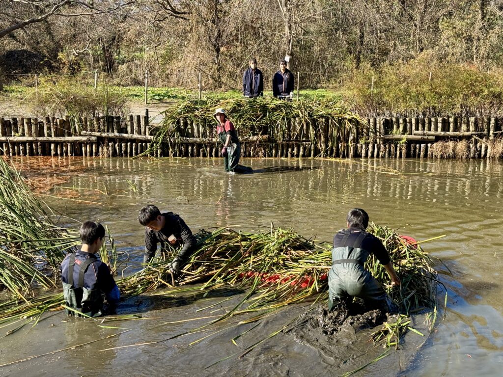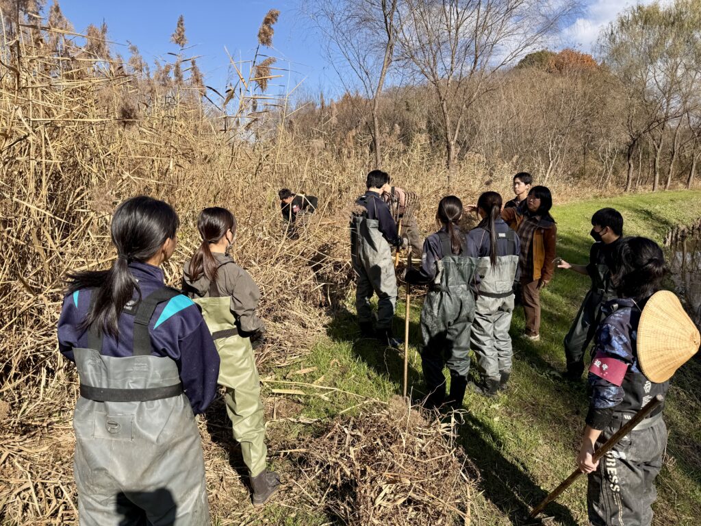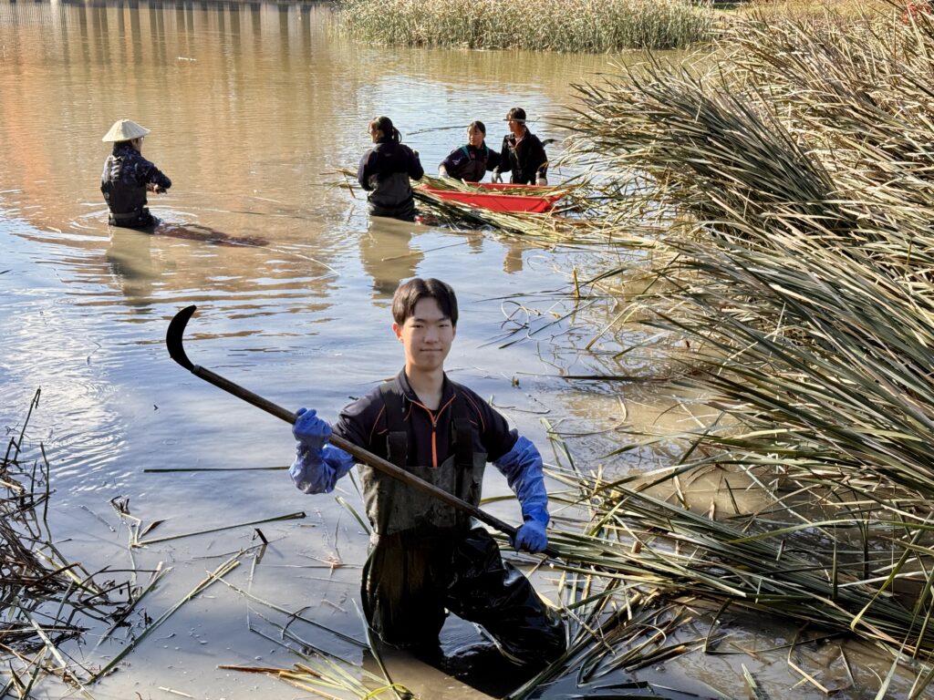 水草の手入れの後は、湿地エリアに移動しました。そこで今後予定されている火入れの準備として除草作業をしました。